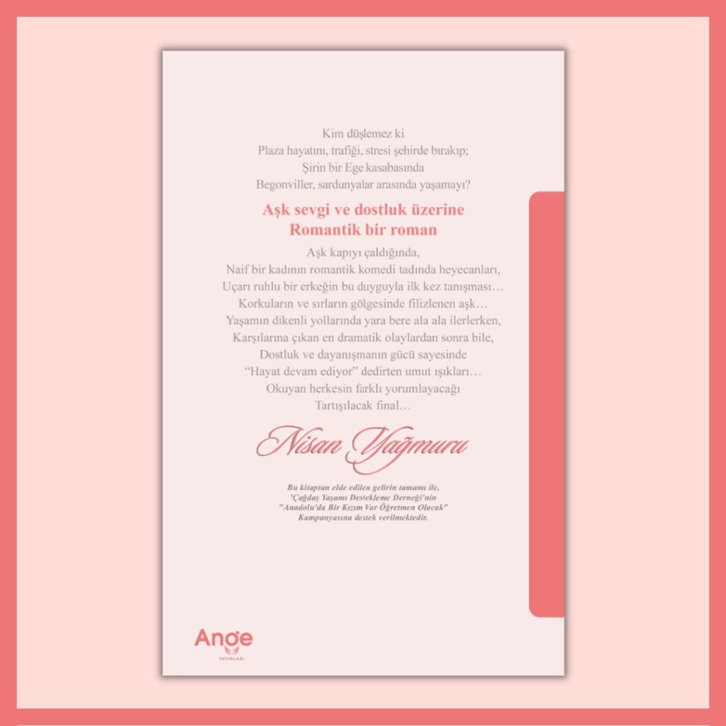 Duru dili akıcı ve sürükleyici kurgusu ile romantik Nisan Yağmuru romanınızı arkadaslarima yılbaşı hediyesi olarak yolluyorum.Digerleri de benim okuma listemde..